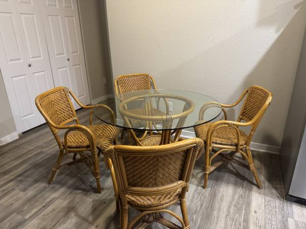 Downsizing an apartment for a move to senior living. Everything must go! Some of the items available: Vintage Rattan Dining Set-Table and Four Chairs https://www.facebook.com/share/1CJCV33Fk1/ Like...
