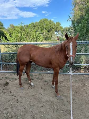 Halter broke and ready to start her career she is very athletic and will make a good barrel, or trail horse.