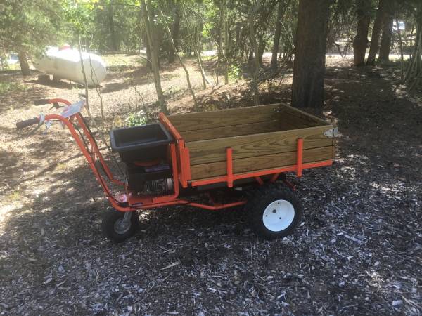 Gas powered wagon. Can haul 700-800lbs.interchangeable bed. Heavy duty plastic & heavy duty wood