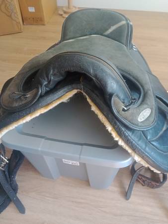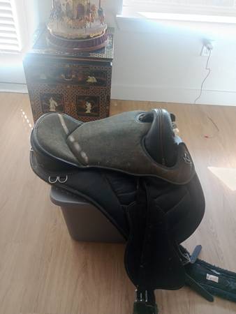 Nice black Hilason Australian/English Saddle for sale. Light weight to lift. $200.00 obo. I am getting out of horses for financial reasons. In the south aurora Southlands area