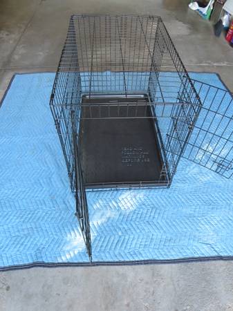 Large Wire Dog Kennel 2 Secure Double Latch Doors Plastic Bottom Tray Easy Removal for Cleaning Very Clean Very Secure 23” Wide 36” Wide 26” Tall Folds to 3 ½”