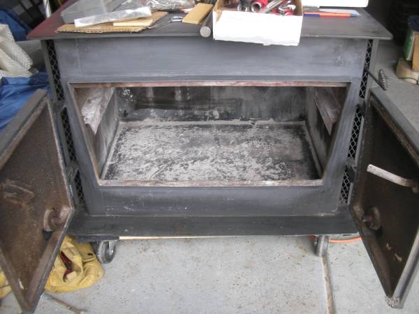 Monster Wood Burning Fireplace Insert Stove – Has the complete firebrick ready to put back in. Includes the unique fire grate. Includes all the metal surround in the picture. Surround metal two...