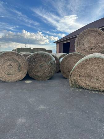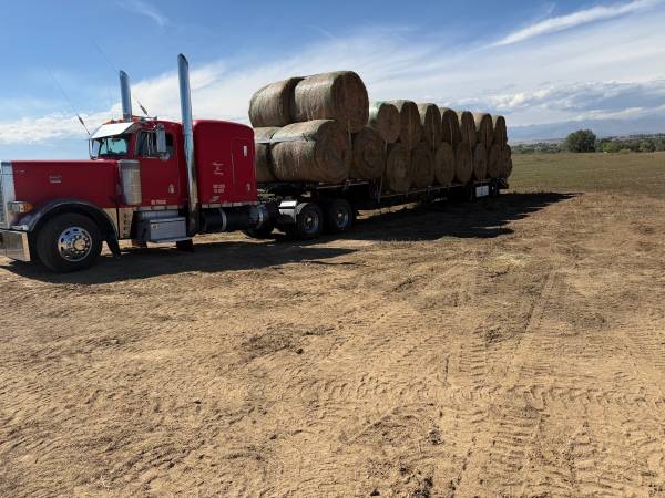 Second cut alfalfa round bales net wrap 1400 lbs delivered for $185 a bale 90 moles from Brigthon Colorado ok horse hay premium steer hay 34 to a load very green inside