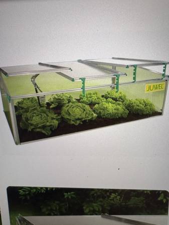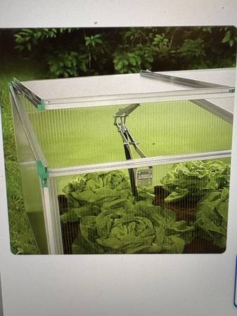 This garden keeps moisture and heat in cooler months . It keeps animals out and protects your plants from rain and hail /snow when the lids are down. 59" long x 33" wide x19 1/2" tall at the rear x16" tall at the front