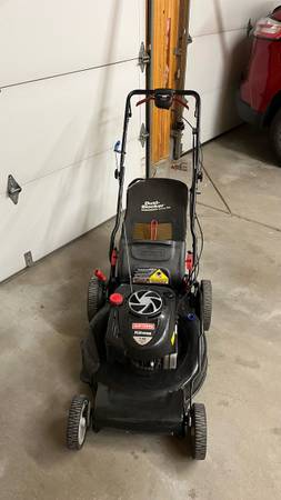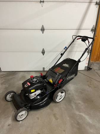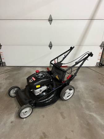 Bought a new lawn mower, but this one still works well. Oil and gas powered with variable speed. Bag was sewn so grass doesn’t blow out. First come first serve.