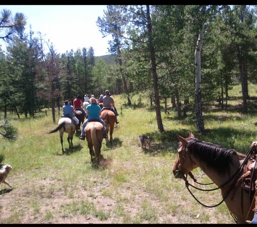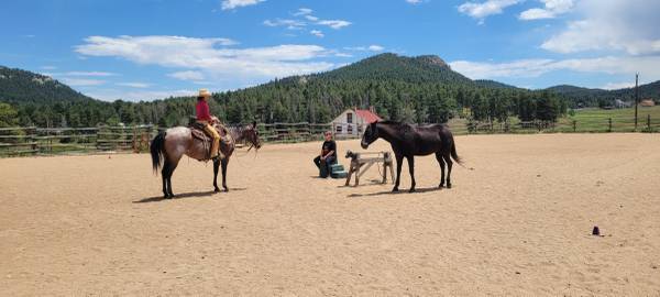 Horse Boarding at one of Evergreen's largest and most historic ranches. Full care pasture , hundreds of acres of riding, excellent environment for most candidates, especially harder keepers. Free choice top quality grass hay fed using state of the art patented feeders. Ride the ranch or trot to nearby Open Space trails. Outdoor arena, round pen, nice tack room, Wi-Fi and office. Limited pasture space just became available. We are a great community for boarders and a wonderful option for retired/semi-retired horses. We also have specialized care for overweight and retired seniors (horses, that is!) Inquire for details. Sunny outdoor arena is plowed and groomed regularly for year round riding. Great rates, unbeatable location, excellent references in our 14 years of operation. Please reply to ad for further details and current rates.