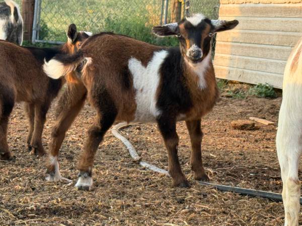 I have multiple doelings from grand champion dairy lines. First doe pictured- Birthdate: 3/27/26 UTD Vacc. Disbudded Can be registered Second doe pictured- Birthdays: 03/26/25 UTD Vacc. Disbudded...