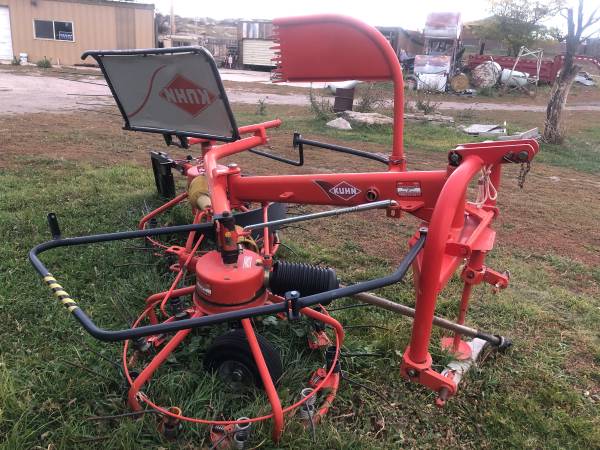 A Kuhn Haybob is a two-in-one agricultural machine that acts as both a tedder and a rake. It is designed for small- to medium-sized operations and is used to fluff up and spread freshly cut hay to help it dry faster (tedding) or to form the hay into neat windrows for baling (raking). The Haybob is a practical and economical alternative to owning two separate machines.