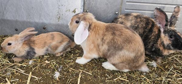 I have a handful of extra bunnies left Most are Rex and mini red but there are 3 harlequin babies, 1 harlequin mom, and 1 pet quality Holland lop buck in the mix $20 each buck and $25 each doe