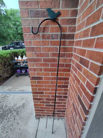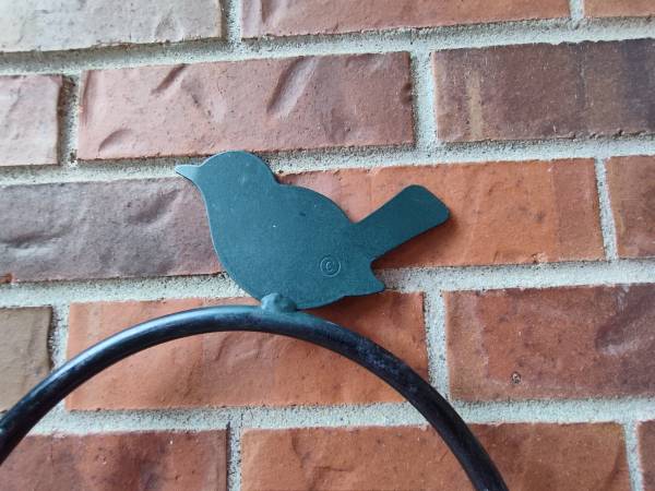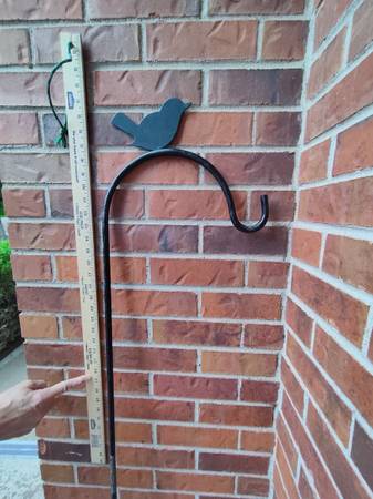 Used but still Excellent Condition Shepherd's Hook - solid black iron bar w/ green bird motif - plants/bird feeders