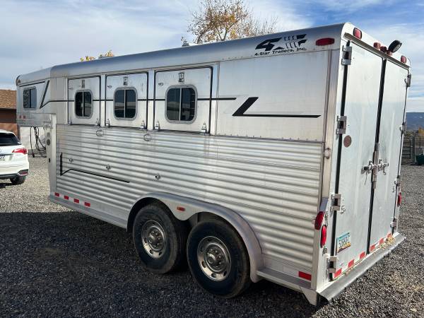 keywords: horse trailer, 4-Star, aluminum gooseneck, 3-horse slant, dressing room, tack room, sleeping area, overnight, slant load, equine trailer, livestock trailer, show trailer, Featherlite, Exiss, Sundowner, CM, Trails West, Western Colorado, Grand Junction