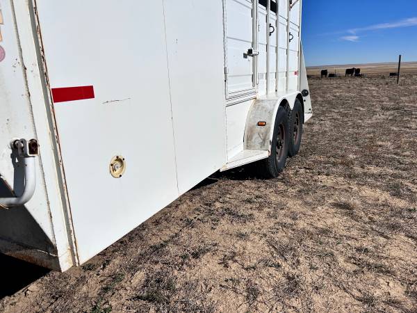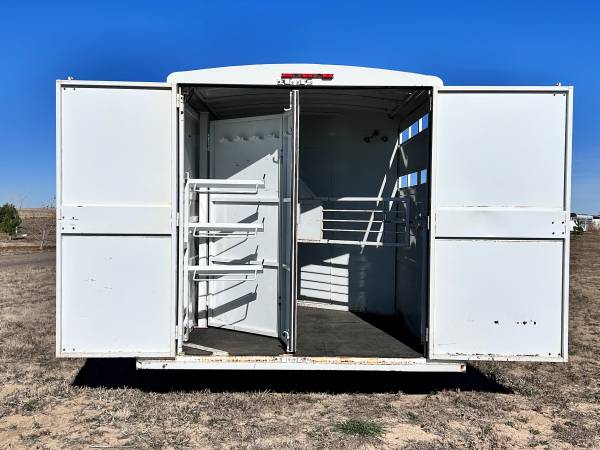 Clean trails west 2 horse gooseneck trailer for sale 7,000 lb (8 lug) torsion axles 10 ply tires with deep tread Unused spare tire Original owner had this trailer designed with an over sized...