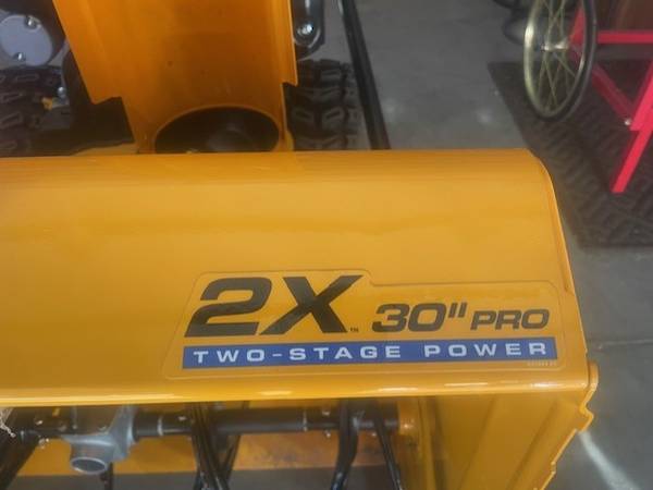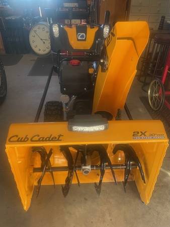 Like new Cub Cadet 2X 30" snow blower with the top of the line 420cc engine. Always garaged and barely used. I use a plow blade on the front of my RZR, so don't use this one. It has all of the bells and whistles including electric start, power steering, heated hand grips, etc. Home Depot currently sells the 30" 357cc model for $1883 plus tax.