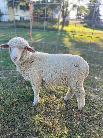 Unsure of breed, but she is a very sweet sheep and will come right up for food. 6 months ol
