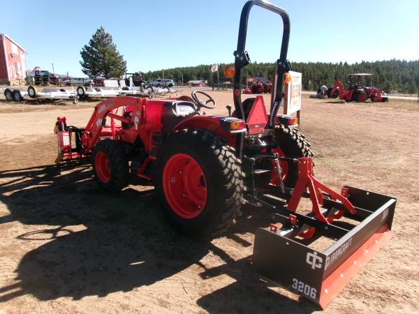 Tractor package includes tractor above PLUS 6’ IronCraft HD box blade, engine block heater, Rim Guard in rear wheels (ballast) and KIOTI's 6 year unlimited hour tractor warranty. The fire mitigation special includes the tractor, loader, box blade above PLUS 66” KIOTI rake grapple (KG4066), third function valve on the loader and a 455 Husqvarna chainsaw with 20” bar (50:1 Fuel and 5 year Husqvarna warranty). Regarding tractor delivery, Hitchin' Post delivers anywhere in Colorado for FREE but if you pick up your package in Lake George we take $500 off the price.