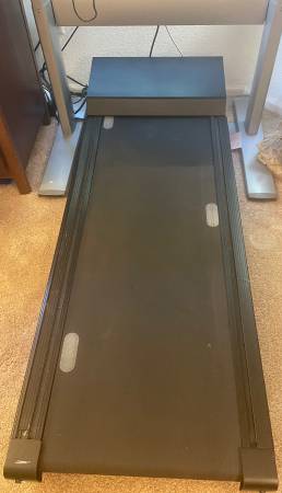 Attached treadmill and moveable desk in great condition. Treadmill goes to 2 mph max and is meant for walking only. Attached desk can be raised and lowered to desired height.