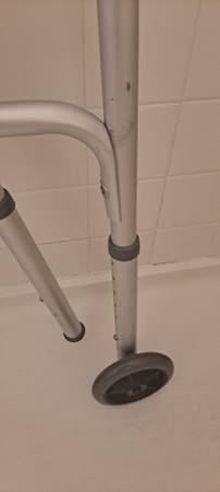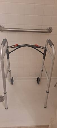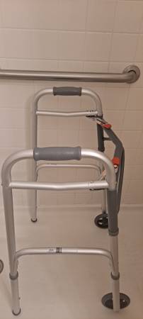 1) Adult folding walker with 5"wheels,heavy duty 350lb capacity. Easy folding for your car trunk for travel. Adjustable heights good condition. $ 30.