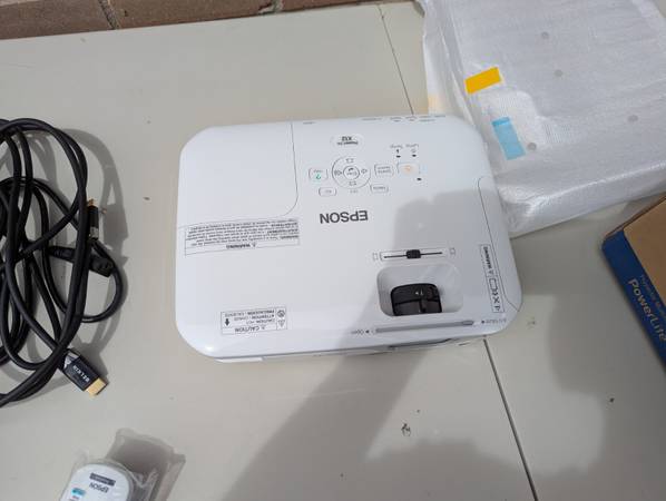 → Lightly used, includes remote, power & VGA cables, protective wrap, and carrying case. VGA input only (older model).