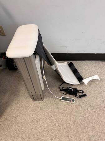 Molly Bath Lift. Fits over bath tub and fastens permanently to the wall. Has remote control to lower body into the tub. Has soft seat that lowers into the tub. Suggested Donation $600.00. Contact Donna if interested. NO TEXTS PLEASE
