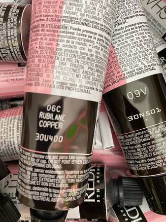 REDKEN conditioning professional hair color. I have about 60 in various colors. No boxes. The tubes are new. Never opened. Shades are various, brown, red, violet, ash, iridescent gold, copper red,...