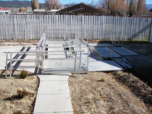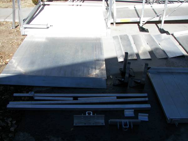 EZAccess Gen.3 Wheel Chair Ramp.This ramp is 50 feet. Has (2) Platforms and (5) long Runs. (1) Platform is 8 1/2' X 5 1/2' other is 5 1/2' X 5 1/2'...(1) run 4'. (1) run 5'. (1) run 7'. and (2) runs 8'. Has all Hand Rails and Hardware. This is the newest of the EZAccess and this one is only one year old and was installed but it never got used one time. Friend died one week after it was installed and never had a chance to use it....Also has (5) Transitons (1) is 4 1/2'x 5' with swivel edge to meet the ground or porch floor. Make an offer.