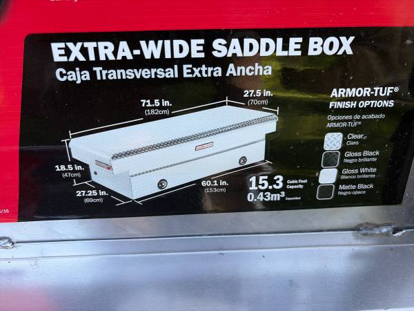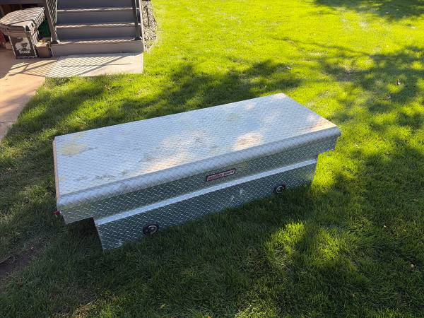 Fits a full-size truck. This is the biggest box they made about 10 years ago. Has Key!!
