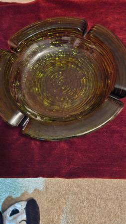 Large Anchor Hocking Soreno green a bit over 8-1/2" ash tray in perfect condition. It stands 2" tall. $7