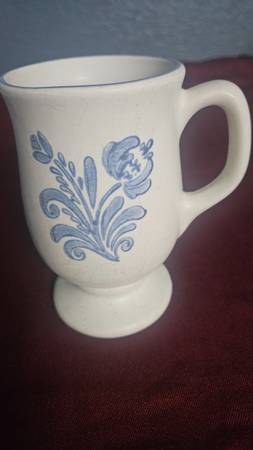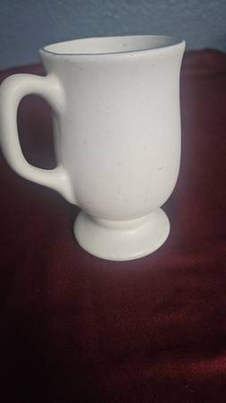 Tall, footed stoneware mug, almost totally, no chips or cracks. $3 Call