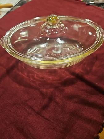 Vtg 1 qt casserole dish with lid. Clearly stamped on bottom. No cracks or chips. $8
