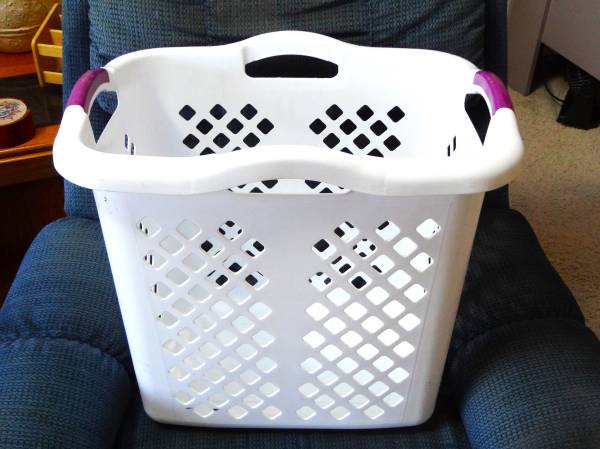 - Plastic laundry basket, 2 bushel, size 21" w x 16" D x 18" H. This item is in very good condition. Asking $5 obo.