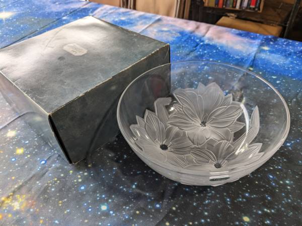 9" Crystal ROMANCE Fruit Bowl NIB with Flower Etchings