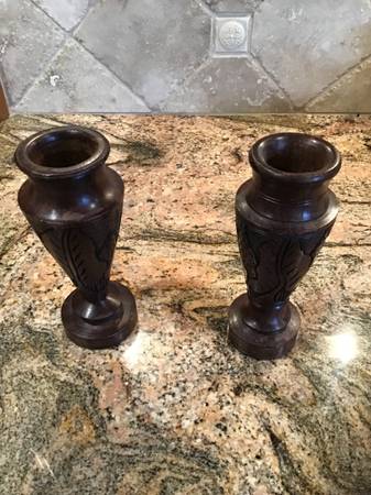 2 carved mahogany wooden vases. Asking 10.00 each or both for 15.00.