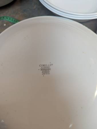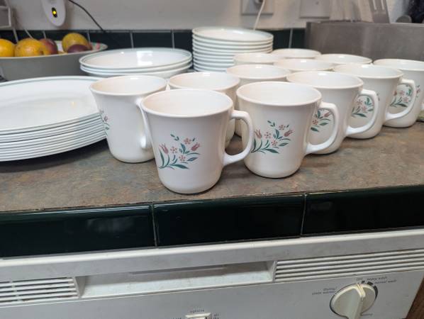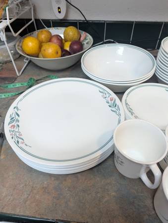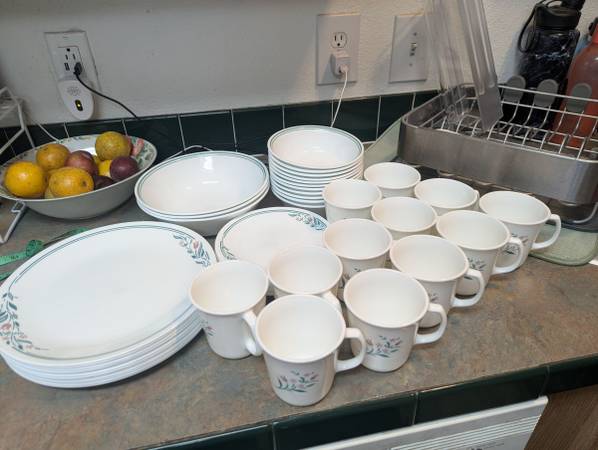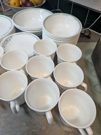 12 10-in plates 3 serving bowls 11 bowls 11 small plates 12 mugs