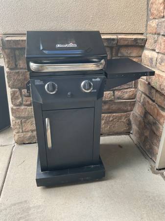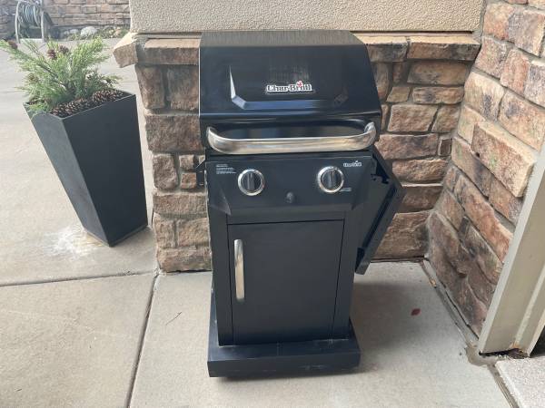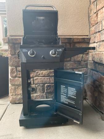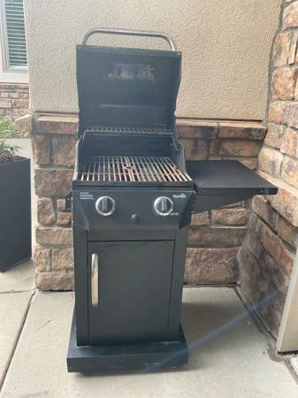 Small 2-burner CHAR-BROIL LP Gas Grill.