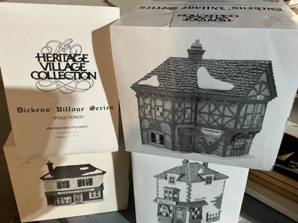 Have 11 villages, all in original packaging except one. Collectibles Lighted $75/each Make offer for all 11 These are from older series and more rare.