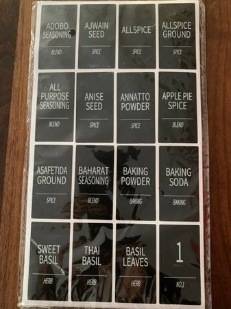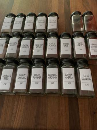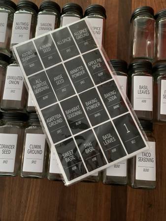 22 glass jars with brand new labels. Glass is air tight
