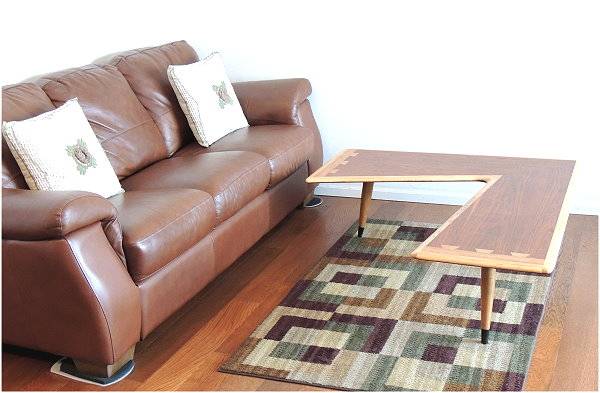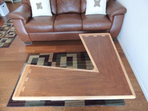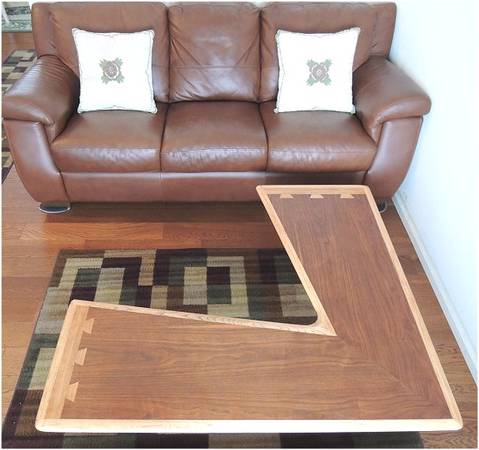 LANE mid-century dovetail coffee table, 'boomerang', RARE PIECE, 14-1/2" tall, length-1 side is 44", 1 side is 48", end of table L/W...18" & 20-1/2". Made in MAR 1950. No scratches, NOTE...last photo show something was dropped on it and made a dent. Item purchased at a household & furniture auction. Moving soon, need to sell.