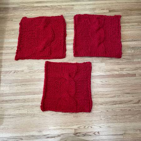 Crate and Barrel Cozy Knit Red Pillow Cover - Set of 3. Measures 23x23in. Smoke-free, pet-free home. Excellent condition. Sold as set for $60. Cash only.