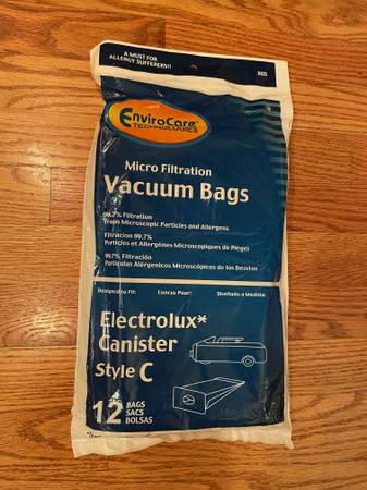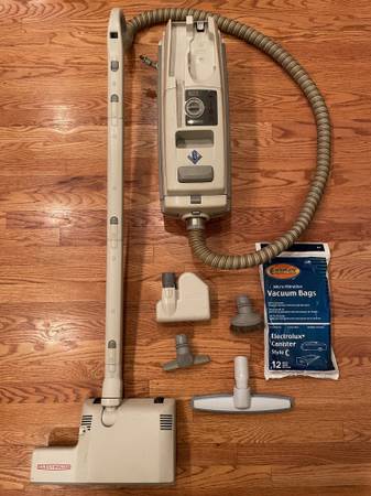 Electrolux Epic Vacuum with many accessories including an unopened bag of 12 Style C vacuum bags that fit this vacuum. It has worked well for us for years, and is still working just fine. Texts only...