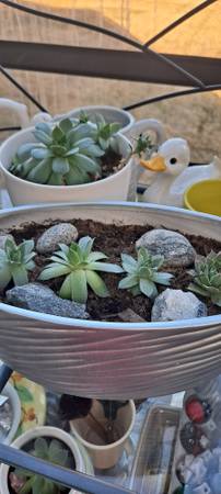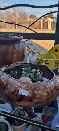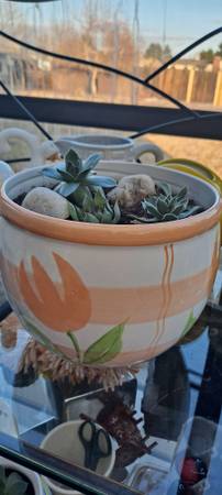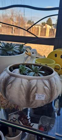 Ceramic flower pots with succulent plants. House plants. Various sizes. 7"-10" H Please see pictures.