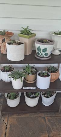 Ceramic flower pots with succulent plants. . House plants. Please see pictures.