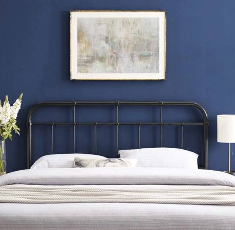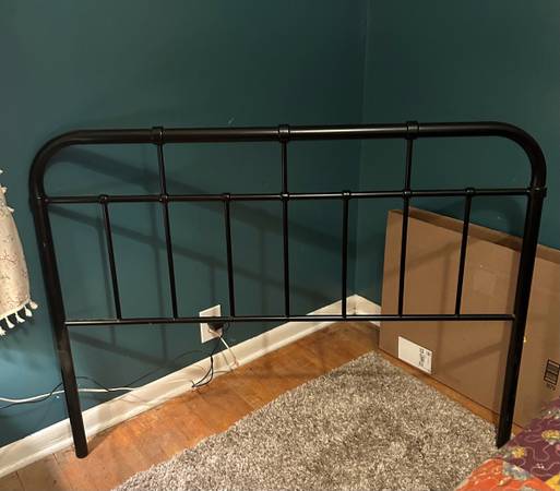 Black farmhouse style headboard for full size bed Missing hardware, so you will need to purchase that on your own No frame, just metal headboard $30 or make offer Thank You!! :)