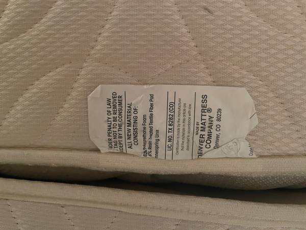 Denver Mattress Company Full Size Mattress Bed Set Mattress: Keystone Firm Box Spring Metal Frame Mattress protector/cover Excellent condition. No stains No pets Only used couple times CASH ONLY...
