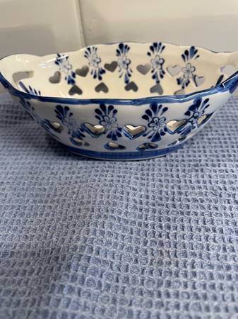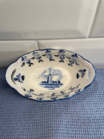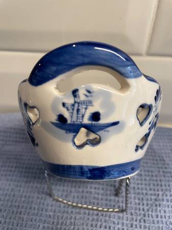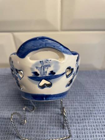 Hand painted Business Card holder, Candy Dish, Hair ties and barrettes or whatever you use come up with. It is 5 1/4 inches by 3 1/4 inches and about 2 inches tall. No chips or nicks. Purchased in Pella, Iowa.