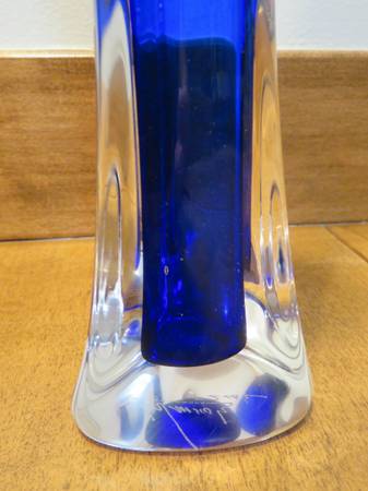 This listing is for one hand blown glass vase by Jonathan Winfisky. This bud vase has a combination of cobalt blue glass inside of clear glass using the Venetian sommerso technique. Signed by the artist on the bottom of the vase and dated 2002. The vase is about 11.5 inches tall, 2.25 inches wide, and 2.5 inches deep. This is hand-blown glass and has a few minor imperfections (bubbles, discolorations, indentations) that are present during the crafting process. I bought this vase new in 2002 and was intended to be a gift; however, circumstances changed and it was put away and recently re-discovered. This vase is new and comes in the original box from International Villa store (Cherry Creek Denver). This has never been used or displayed. It was taken out of the packaging to get pictures and then returned to the box. There are no cracks, chips, or other major flaws. Please review all posted pictures. Pictures are of the actual items you will receive. Items come from a smoke-free home. Feel free to ask me any questions.