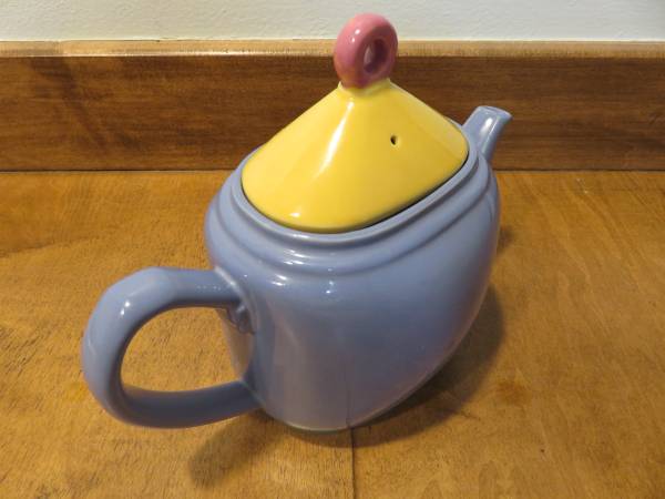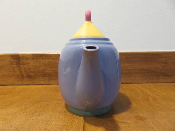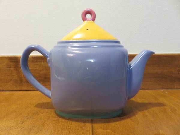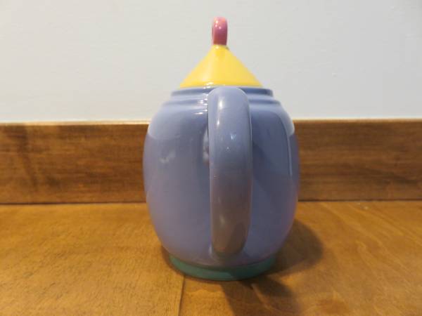 This listing is for one teapot from the Colorways Collection by Lindt-Stymeist. This teapot has a yellow and pink lid and a purple and green pot. The teapot measures approximately 8.5 inches wide (from the handle to the spout) and 6.5 inches high (including the lid). This teapot is lightly used and in great condition. There are no major chips or cracks. There is some minor wear on the bottom from being on the shelf and used over the years. There is a sticker on the bottom but I don’t know if that is original. Please review all posted pictures. Pictures are of the actual item you will receive. Item comes from a smoke-free home. Feel free to ask me any questions.