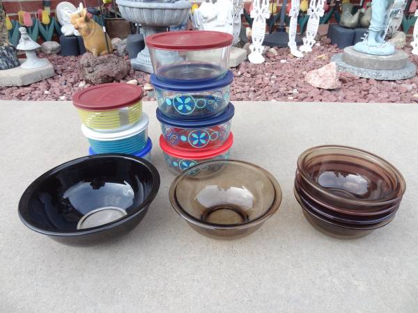 Lot of Pyrex Mixing bowls, Cook and Store Containers With Lids Oven Microwave Freezer safe.