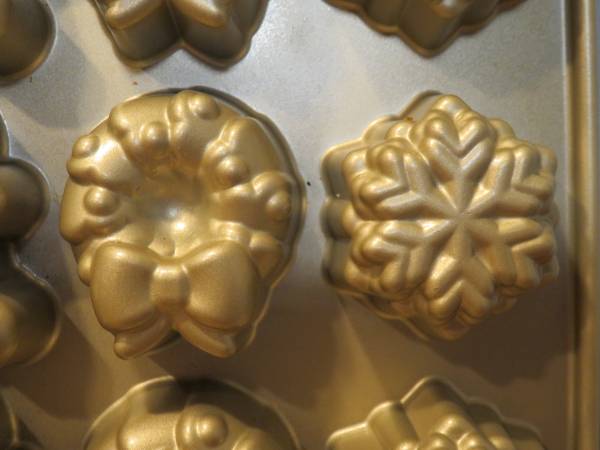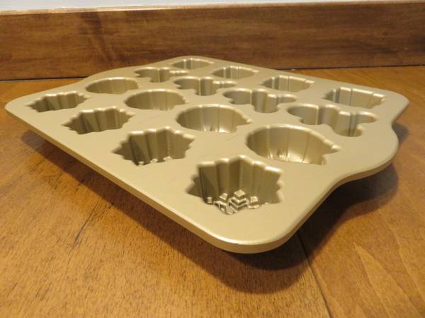 “Prepare a bevy of festive desserts with this cleverly designed cast-aluminum pan. The premium nonstick finish promotes easy release of the 16 finely detailed cakelets, which can be decorated with icing and sprinkles or a simple dusting of confectioners' sugar.