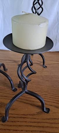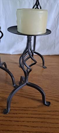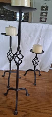 Three tall iron pillars/candle holders. 20"-15"- 10" with candles 🕯 Adds elegance to any room. Set $25.if interested please text 303-596-325three Littleton area Kipling and Belleview. I do better texting. Because of scammers cash only 💸ty. Used in good condition.