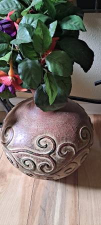 Really nice cool looking pottery vase ,for any décor. 13"×11". Looks really nice with some greenery or dried grass. In good used condition. $25. each. B1-9b/ I have two willing to sell separately. If interested please text 303-596-325three Littleton area Kipling and Belleview. Because of scammers cash only 💸 ty